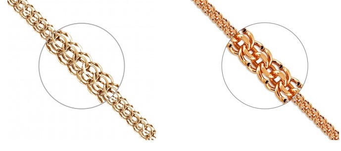 В качестве украшений используются цепочки на шею и на руку, как браслет. Цепочки из серебра в магазинных коллекциях отличаются длиной и видом плетения. Это главные характеристики цепочек из любого драгоценного металла.