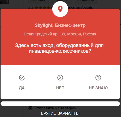 Любая карточка содержит атрибуты, генерируемые самими юзерами. «Понимаете это место?» – на панели познаний Google дает всем желающим поделиться информацией, ответив на один либо несколько вопросцев по желанию.