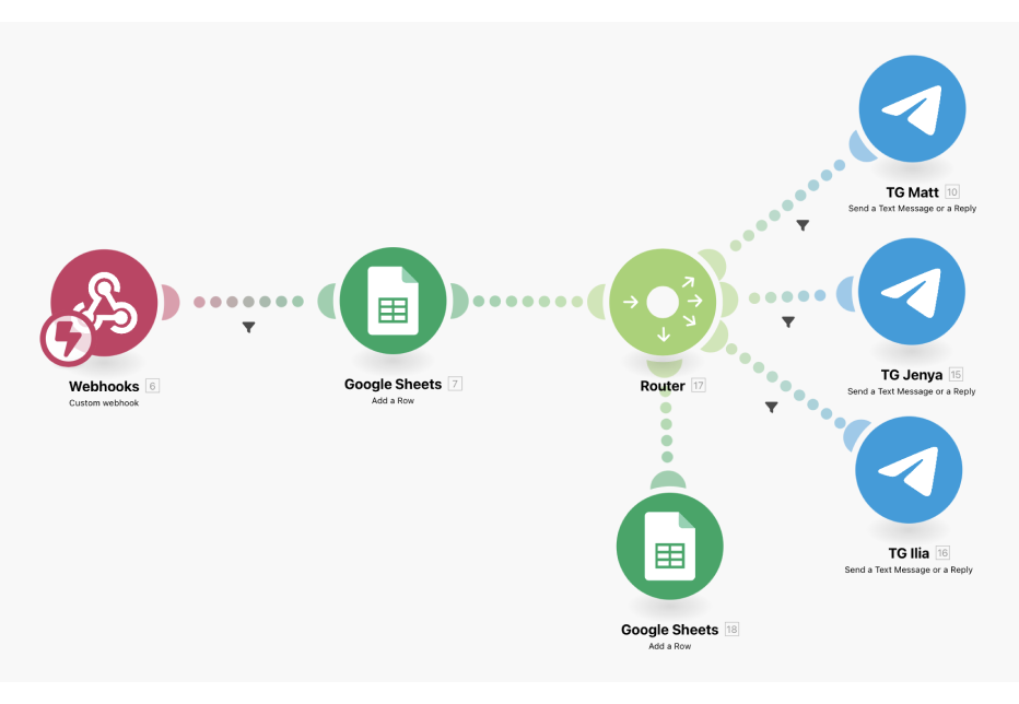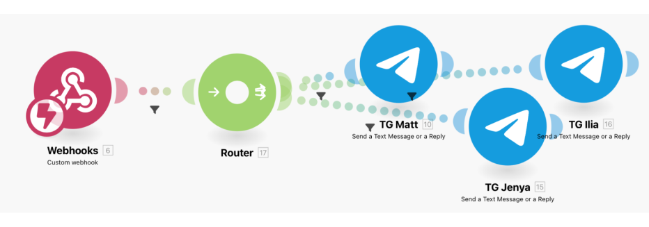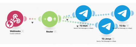 Для получения уведомлений и передачи их в Telegram используем коннектор make.com. Он объединяет меж собой различные сервисы и работает без кода. Находка для гуманитариев, аллилуйя!