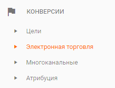 В Google Analytics отчеты Электронной торговли находятся в меню обычных отчетов во вкладке Конверсии(рис.1.).