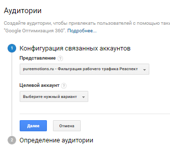 Рис. 7. Настройка сектора «Аудитории» в Google Analytics