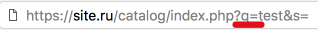 3. В поле «Свойства запроса» вставить параметр, который добавляется при поиске по сайту. Чтоб выяснить параметр, раскрываем сайт, пишем в строчку поиска запрос «test» и глядим в адресную строчку. Параметр перед запросам в поисковике меж знаком «?» и «=» и будет тем, который нам надобно отслеживать. В данном случае параметр «q». Ах так это смотрится: