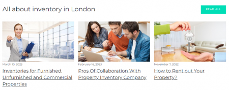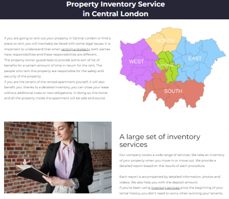Добавили раздел «Блог» со статьями о инвентаризации. Разработали отдельные странички по всем районам Лондона, в каких компания исполняет свою деятельность. Расширили раздел «Услуги», добавив в него новейшие подразделы.