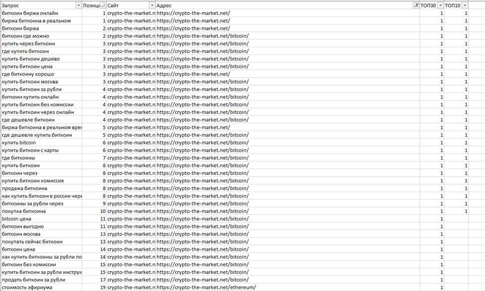 Сайт crypto-the-market.net собрал 200 ссылок и ранжируется еще лучше: