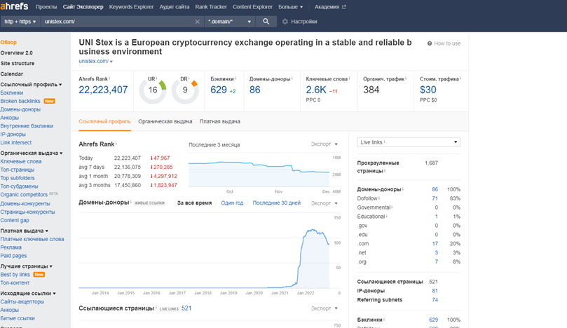 Но отдельные образцы демонстрируют эффективность линкбилдинга. Сайт https://unistex.com/ru/kurs-kriptovalyuty/kurs-bitkoina-bitcoin-btc-na-segodnya/ получил всего 100 новейших ссылок, но выходит в ТОП-30 и по отдельным запросам даже попадает в ТОП-10.