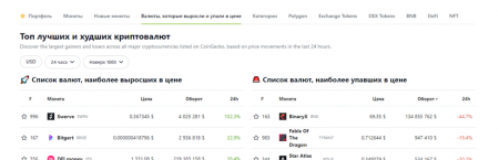 - Отсутствует настоящая локализация сайта, к примеру, на https://www.coingecko.com/ru/crypto-gainers-losers часть инфы выводится на британском.