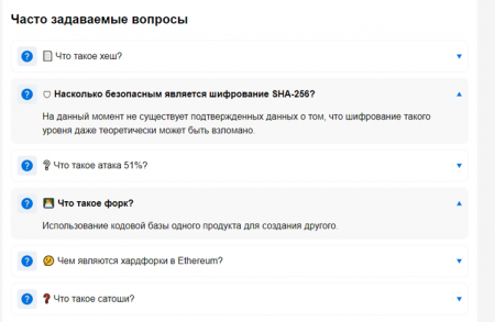 Также на этом сайте образцово изготовлен блок «Нередко задаваемые вопросы», который можнож брать на вооружение для реализации: