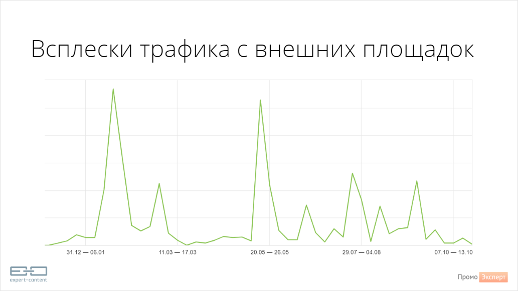 Выходило так, что я делала много контента, полезного и превосходно ранжируемого, но отдавала все неповторимые статьи в СМИ, и очевидно, не получала поискового трафика в собственный блог. Продвижению сайта ссылки на посторониих ресурсах никак не подсобляли – взрыв переходов из СМИ и соцсетей был кратким, и через два-три дня визиты на сайт опять снижались до нуля.