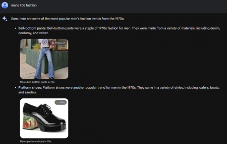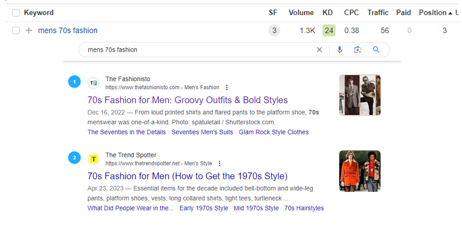 При всем этом у сайта есть хорошие ключевые запросы, по которым он ранжируется. К примеру, по запросу «mens 70s fashion»: