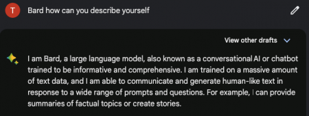 Bard – экспериментальный чат-бот от Google. Единственное отличие от всеми приглянувшегося ChatGPT – это то, что Bard получает информацию напрямую из веба.