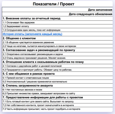 Здесь мы каждому пт присваиваем определенное количество баллов и расцениваем, удерживает клиент с оплатой или нет, как согласовывает, вводит правки или нет и т.д.