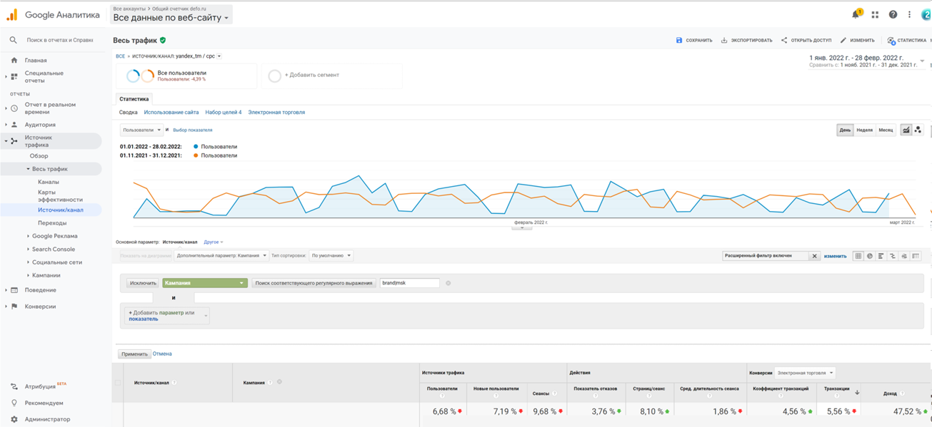 Бюджет на небрендовую маркетинговую кампанию на период январь – февраль был выделен подобно предыдущему, разница составила всего 7%.