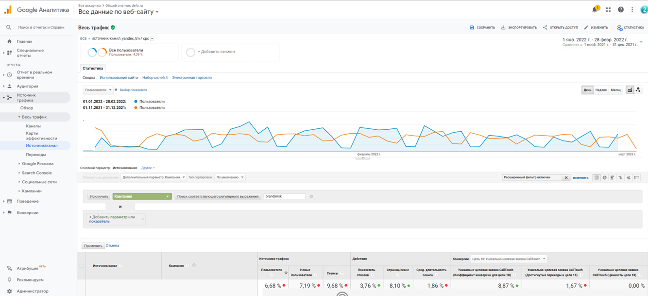 Количество звонков снизилось. Но размер заявок и транзакций остался практически на бывшем уровне. Мы изъясняем это необыкновенностями подсчета при работе с автостратегиями – учитываются вязки всех целевых достижений.
