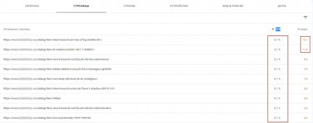 Обращаем внимание на топ-10 в выдаче, а посреди их глядим странички с низким CTR.