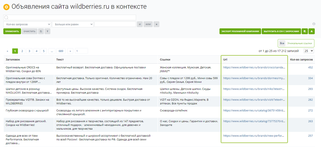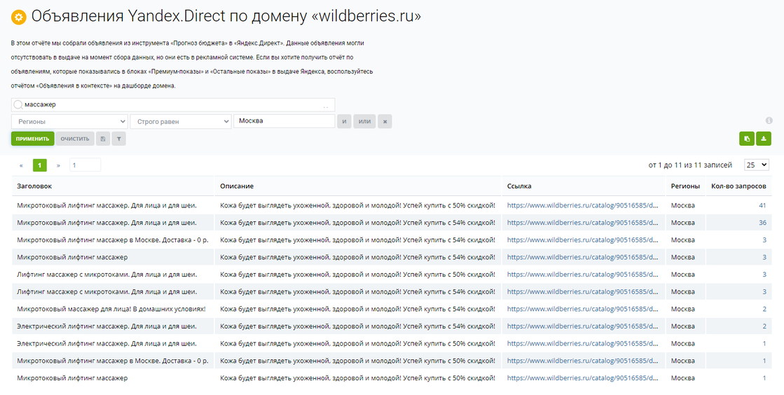 Отчет дозволяет проанализировать количество объявлений по запросу. Ежели их наиболее 100, то это разговаривает о достаточно высочайшей конкуренции.