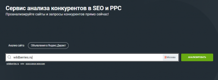 Введите домен вашего сайта, или основного соперника для анализа. Мы брали для образца wildberries.ru.