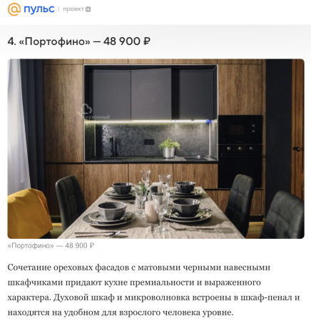 - «5 вариантов кухонь от 34 000 рублей за весь гарнитур»;