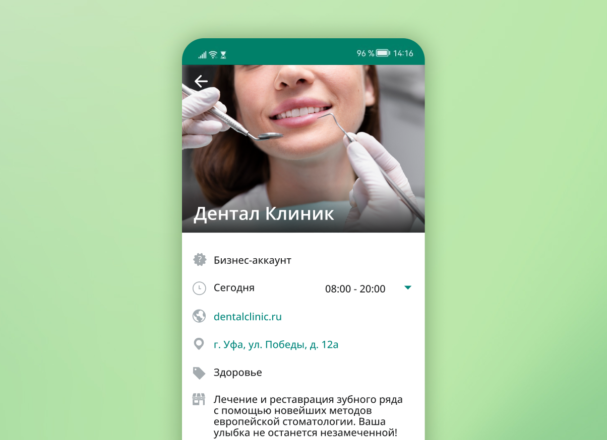 Вот что видит юзер при первом контакте с компанией через WhatsApp. Заполненный профиль вызывает больше доверия