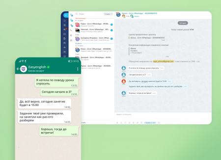 Переписка с клиентом в мессенджере интегрируется прямо в карточку сделки CRM-системы. Менеджер отвечает клиенту из WhatsApp прямо из CRM-системы, ничего не растеряет не забудет. Программа будет автоматом подсказывать ему о новейших известиях.