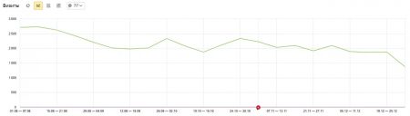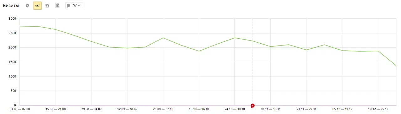 Пример отчета из Яндекс Метрики, в каком видно, что количество визитов на сайт снизилось
