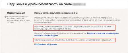 Уведомление от Яндекса о понижении позиций из-за фильтра «Баден-Баден»