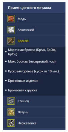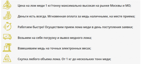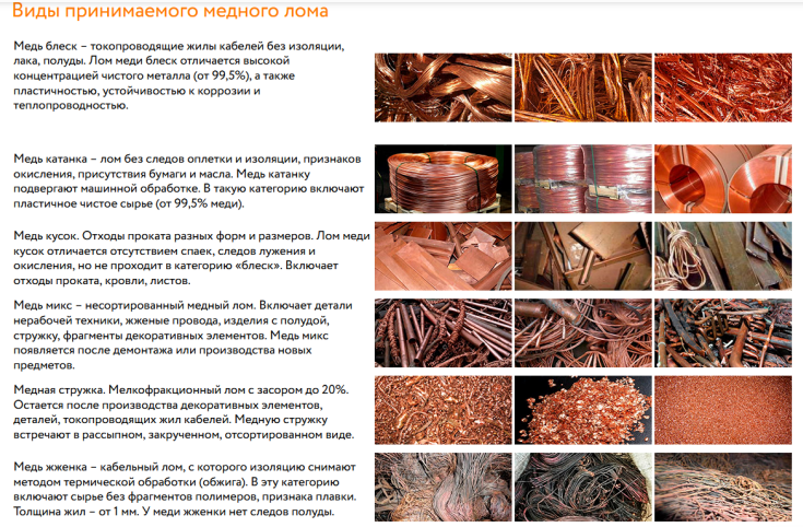 Пример экспертного контента по видам принимаемого медного лома (текстовый и графический контент)