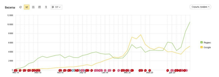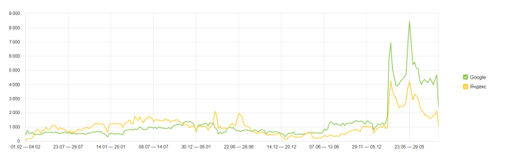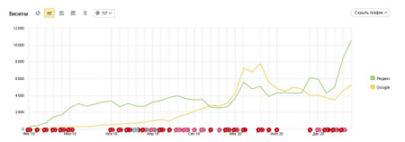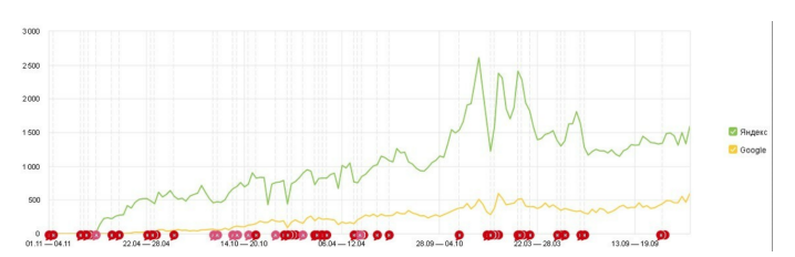 - Мы получаем довольно прыткий поисковый околоцелевой, а время от времени и целевой поисковый трафик, который конвертируется в заказчиков сервисы.