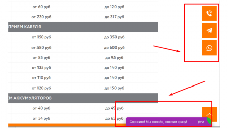Гостю обязаны быть доступны функции прыткого контакта с менеджерами компании на каждом экране странички (чат на сайте, звонок, мессенджеры)