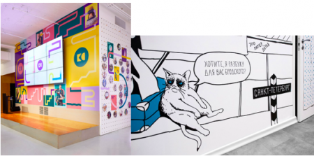 Подобрать пригодные референсы с указанием того, что непосредственно вам в их нравится. Представим, что вам захотелось чего-то «веселенького». Недостаточно прислать картину и сказать: «Вот так». Укажите, что делает ее веселой фактически для вас. К примеру, сочетание ясных цветов и абстрактных линий, как на референсе слева. Либо вам нравится элемент шутливого комикса, как справа.
