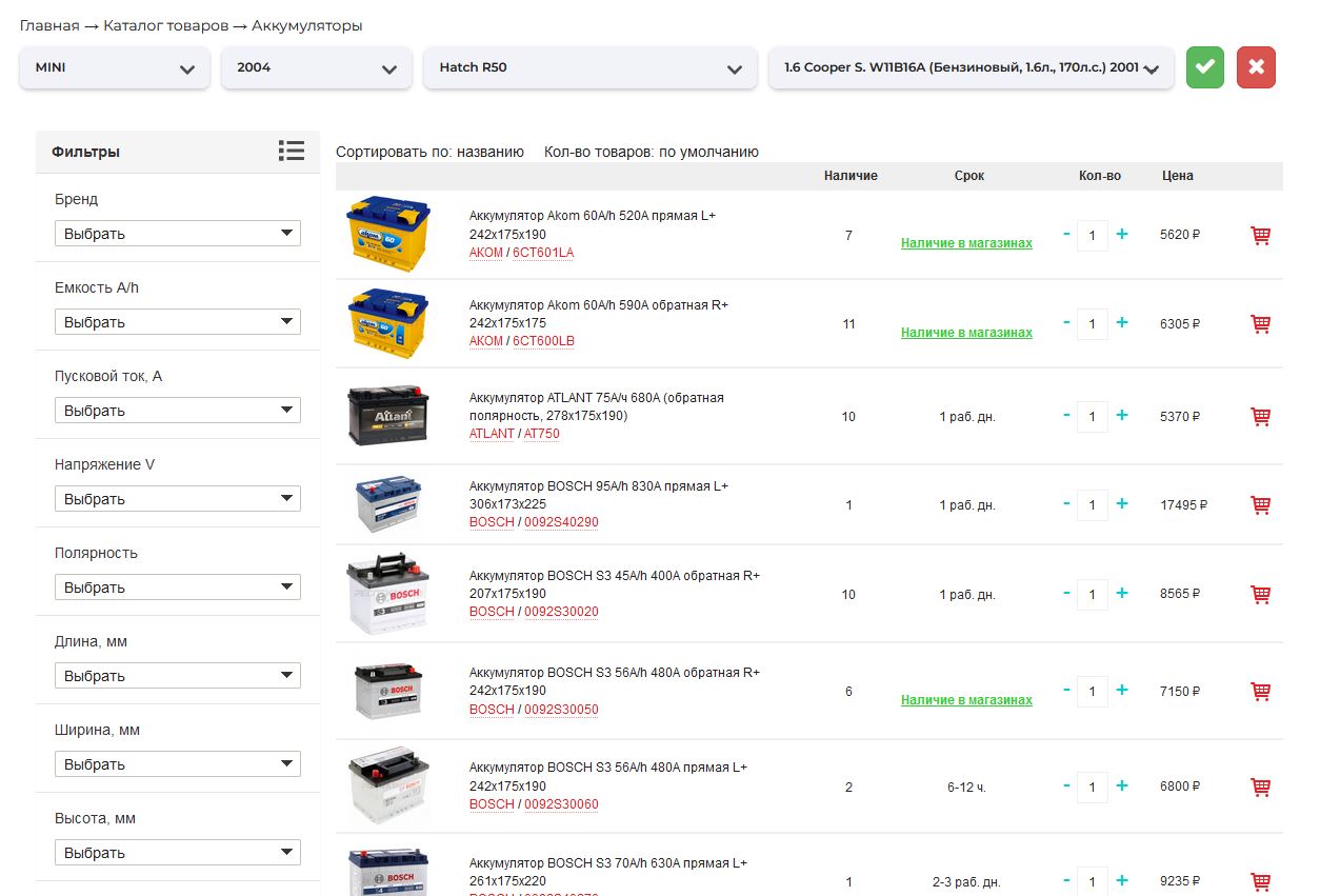 Как во всяком e-commerce, обязана быть сортировка по стоимости и репутации. Превосходно бы добавить также фильтрацию либо сортировку по наличию и сроку доставки – это главный параметр в отрасли.