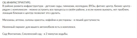 Избирая квартиру, человек «примеряет» на себя не совсем лишь интерьеры, но и жизнь в данной локации в целом. Непременно опишите, что находится рядом, дом, подъезд. Делаем упор на превосходствах (которые можнож отыскать постоянно) : превосходная правящая компания, ухоженный подъезд, тихие соседи. Не забываем и о прошлом пт и, обрисовывая плюсы, учитываем запросы возможных покупателей.