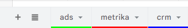 Мы определились с источниками и сейчас нам необходимо вынуть оттуда данные для отчета. Но предварительно сделаем Google Таблицу с листами под хоть какой из источников.