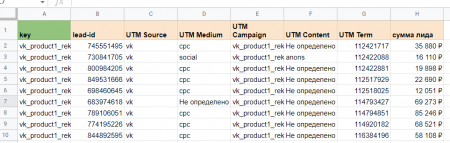 Таковым образом, данные по рекламе ВКонтакте у нас готовы.
