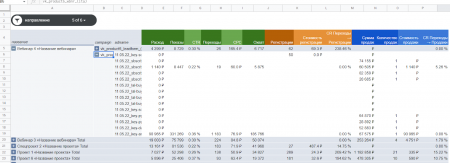 В таблице ясными тонами выделены расчетные столбцы, которых нет в «adset» и которые я прибавлял расчетными значениями. К примеру, стоимость клика СРС.