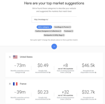 - У Google есть два прибора, которые могут тут посодействовать: Google Trends, который дозволяет сопоставлять запросы по ключевикам по разным странам за различные временные отрезки, и Global Market Finder, куда можнож вбить сайт, и Google переведет его на 56 различных языков, проанализирует ключевики и запросы и покажет, какие рынки являются пригодными для данного бизнеса и сайта.