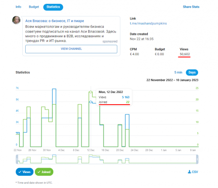 Самый, на наш взор, великий недочет Telegram Ads – это ограниченная статистика, которая не дает полноценно проанализировать рекламу.