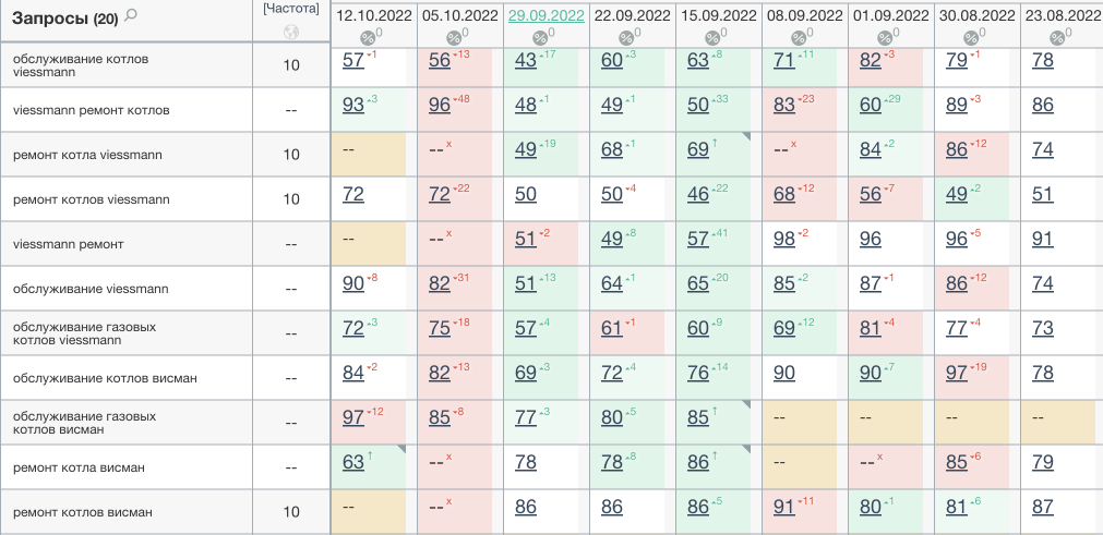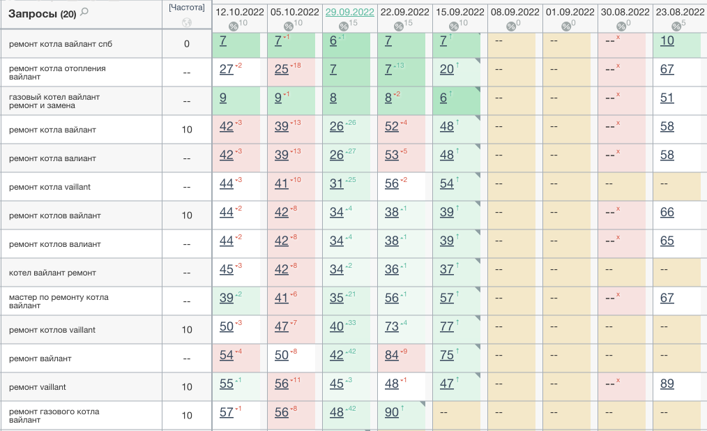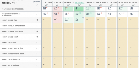 При всем этом, желая на URL «ремонт котла бош» и было куплено величайшее число ссылок, каких-то различий в темпе роста позиций по сопоставлению с остальными URL не было отмечено. Причина, судя по всему, в высочайшей конкурентности запросов и наличии дублированных страничек на сайте. Вероятно, ежели бы ссылки поддерживались более длинный срок, рост позиций мог ускориться.