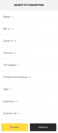 В итоге мы собрали 16 видов фильтров и все их добавили в различные категории к теснее имеющейся фильтрации. На скрине ниже – 9 фильтров для «Водоизоляционных пленок, лент, манжет», но на иных категориях это количество может достигать 20.