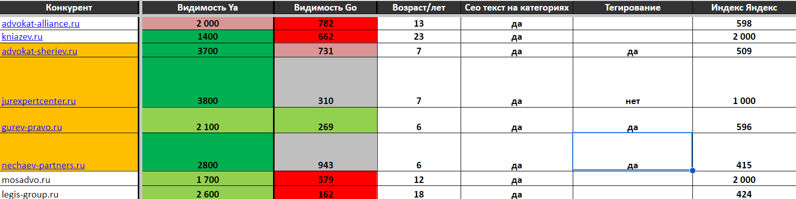 Мы проанализировали 14 страничек соперников и выделили 4 самых удачных сайта из ТОПа, на которых стоит ориентироваться. Проверили видимость ресурсов на Яндексе и Гугле, возраст страничек, наличие ссылок, сайтов-доноров, SEO-текстов и т.д.