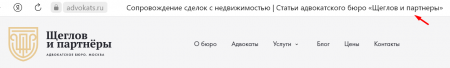 Метатег title для статей сделали по последующему шаблону: [H1] | Статьи адвокатского бюро «Щеглов и партнеры»