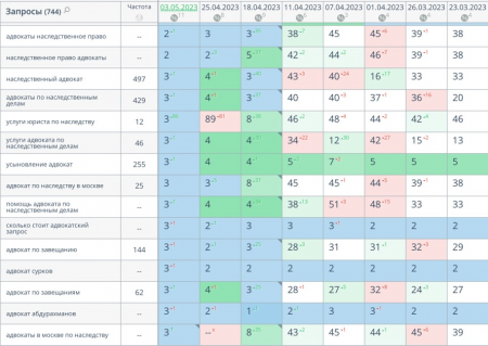 Сайт вышел в ТОП-3 Яндекса по таковым запросам, как: «наследственное право адвокаты», «адвокат по наследству», «адвокатский запрос цена», «усыновление адвокат», «адвокат по завещанию». Бюро начало получать заявки из поиска теснее через месяц опосля пуска работ по SEO-продвижению.