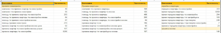 Поглядите: в таблице ниже показана сегментация, другими словами распределение ключевых фраз на семантические группы: «приемка квартиры в новостройке», «приемка квартиры», «передача квартиры»…