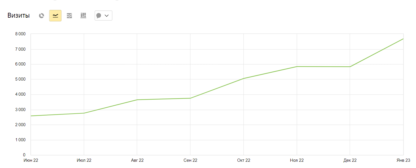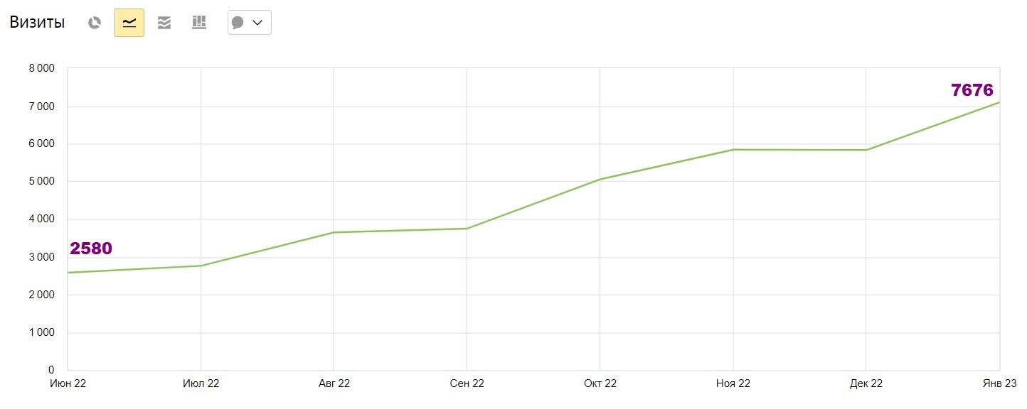 Увеличение поискового трафика в 3 раза за 8 месяцев (было – 2580, стало – 7676 визитов за месяц)