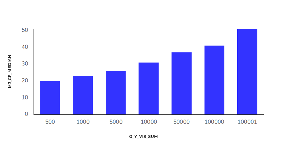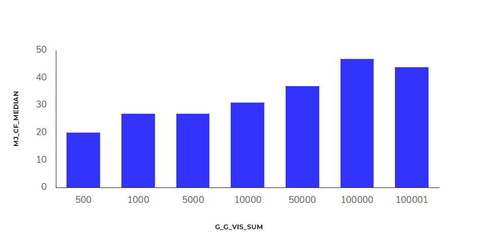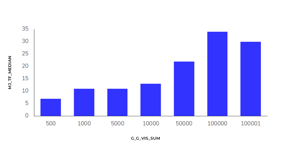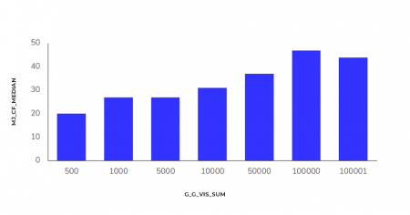 G_y_vis_sum – группы по размеру органического трафика из Яндекса, где 500 – трафик до 500, 1000 – трафик от 500 до 1000 и так дальше. 100001 – наиболее 100 000 органического трафика.