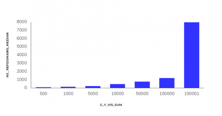 Проанализируем медианное количество ref. Domains и сравним с трафиком, который собирают сайты.