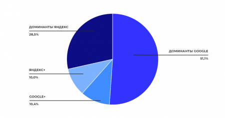| Доминанты Google | Наиболее 70% трафика получают из Google | 51,1% |