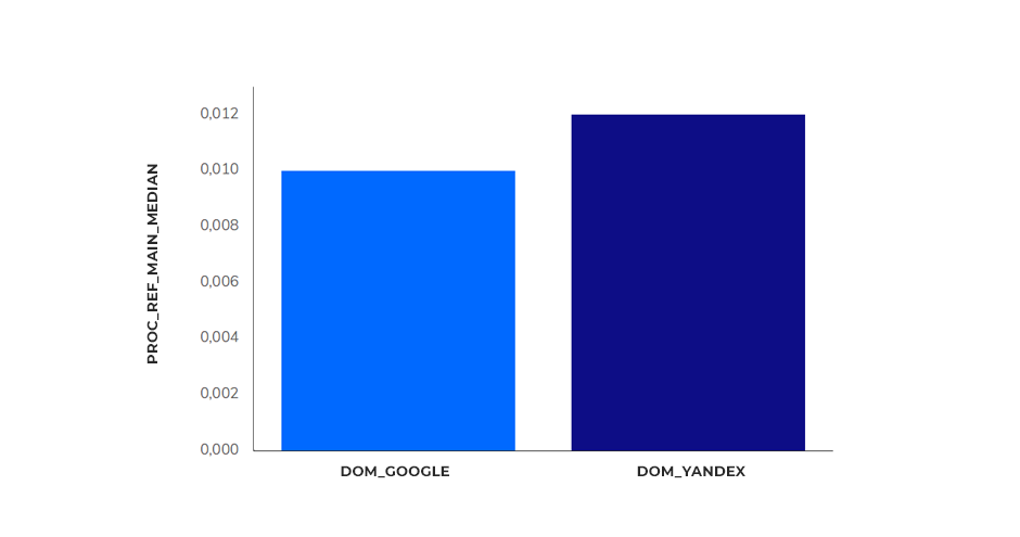 Процент ссылок на основную также идентичен – 58% и 52%. Яндекс и Google не имеют веской различия в предпочтениях.