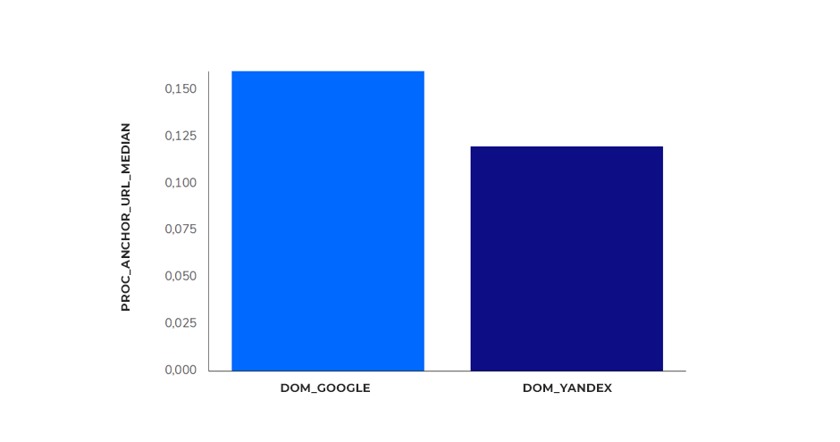 16% для Google и 12% для Яндекса. Разница в количестве анкоров-URL опять не настолько веска.