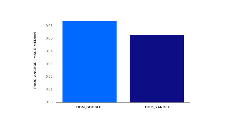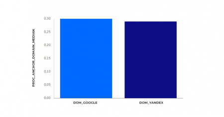 По текстовым анкорам различия малы: 29% для Google и 23% для Яндекса.