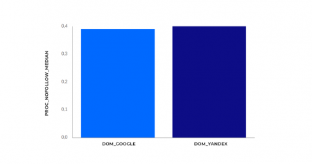 Из графика видно, что по проценту Nofollow-ссылок означаемых различий нет, у удачных страничек он на уровне 40% для обеих ПС.